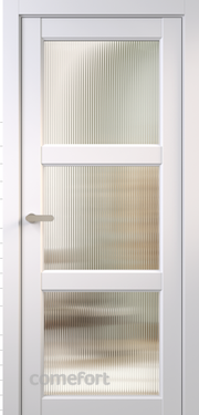 Коллекция межкомнатных дверей с объёмной филёнкой, фигурной фрезеровкой и рифлёным стеклом.