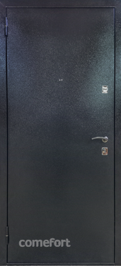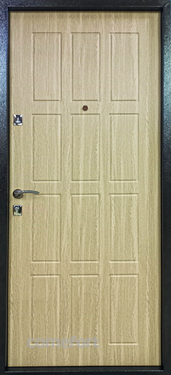 Защитные свойства данной модели придают 2 замка FUARO: основной замок цилиндрового типа, укомплектован цилиндровым механизмом ключ/вертушок, дополнительный замок сувальдного типа. Противосъемные штыри служат дополнительной защитой двери от выпиливания. Дверь укомплектована глазком.